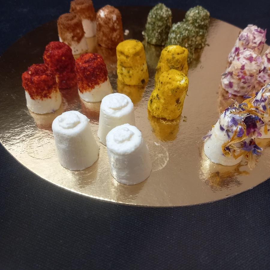 12 Bouchons au lait cru de vache pour agrémenter vos apéros ou vos plateaux. 4 variétés : nature /ail et fines herbes / échalotes / fleurs. Environ 110g