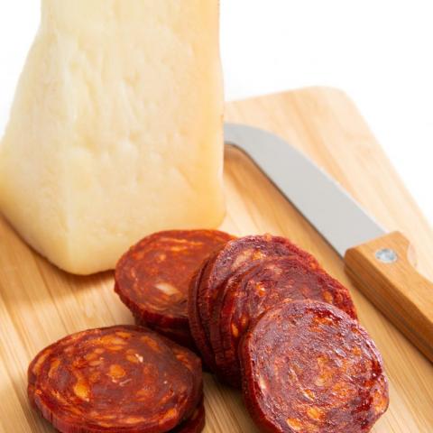 Ingredients: Lait cru entier de nos chèvre (lactose), sel, présure, paprika, poivron rouge, graines de moutarde, ail, échalote, poivre concassé.