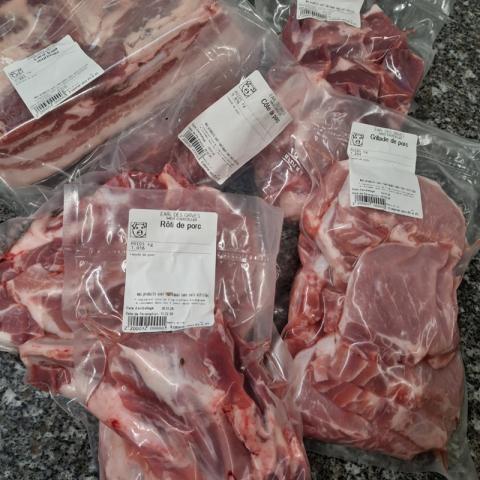 colis de viande de porc de 5 kg avec 1kg de côtes, 1kg sauté, 1kg grillades, 1kg lard frais et 1kg de rôti