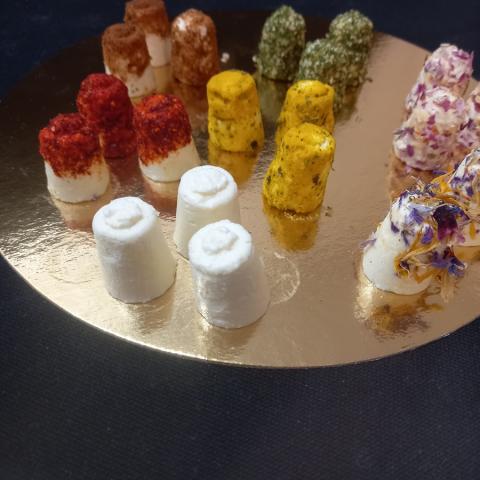 Petit fromage frais au lait cru de vache enrobé de pétales de fleurs séchés : un visuel gai avec un goût subtil.