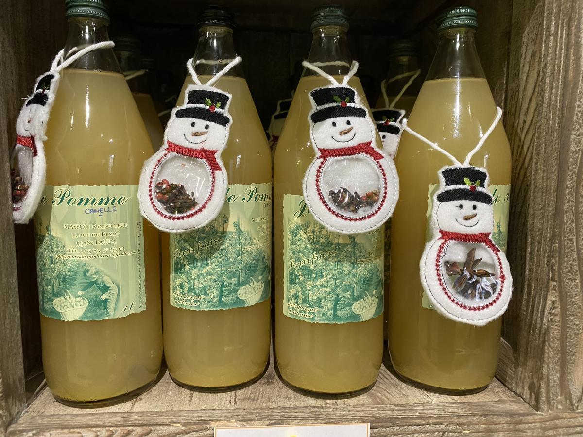Jus de pomme mélange avec à l'intérieur de la bouteille un baton de cannelle qui parfume le jus.