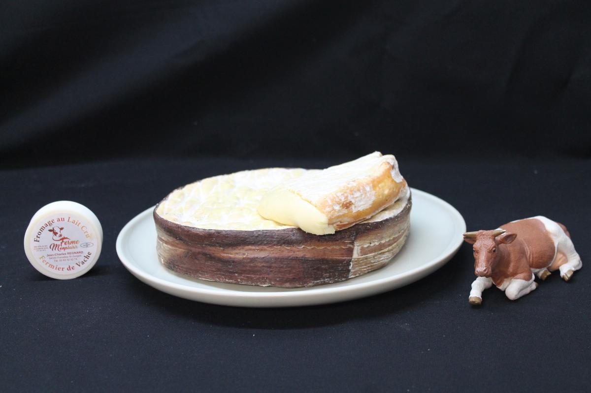 A titre exceptionnel pour la fin d'année ! Découvrez notre nouveau fromage, toujours à base du lait cru de nos vaches. Sous sa croûte blanche, une pâte molle et fondante avec un petit goût boisé dû à la sanglé d'aubier entourant le fromage.