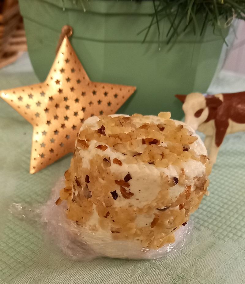 Fromage frais au lait cru de vache enrobé dans des cerneaux de noix concassés.