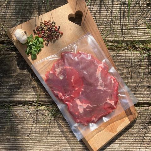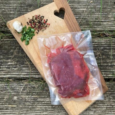 sac sous vide d'environ 3 à 4 bifteaks, boeuf BIO , né, élevé et transformé sur la ferme