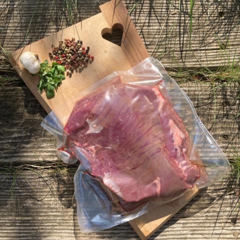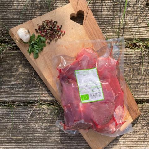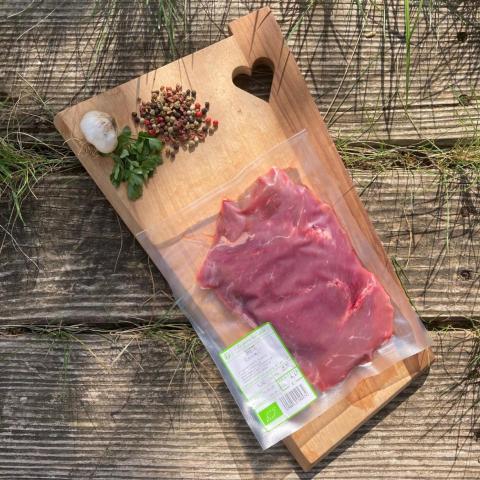 Bavette de boeuf, aloyau ou flanchet, race limousine, agriculture biologique, mise sous-vide.