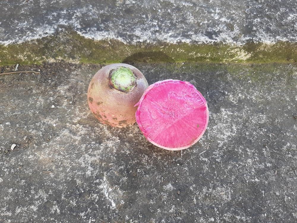 Radis d'hiver au goût doux et sucré à consommer cru de préférence.