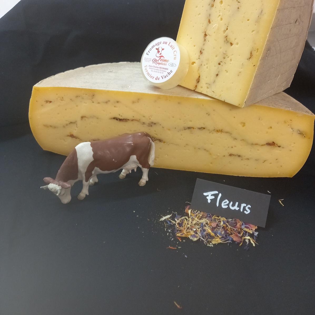 Nouveau! ! La tome du Saintois se pare de fleurs. Goûtez cette texture moelleuse relevée de couches de fleurs séchées qui donnent une couleur et un goût délicats.