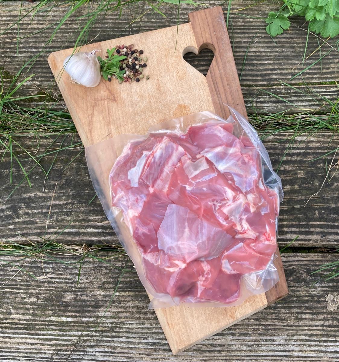 Blanquette de veau avec os, élevé sous la mère, agriculture biologique, mise sous-vide. Environ 1 kilo.