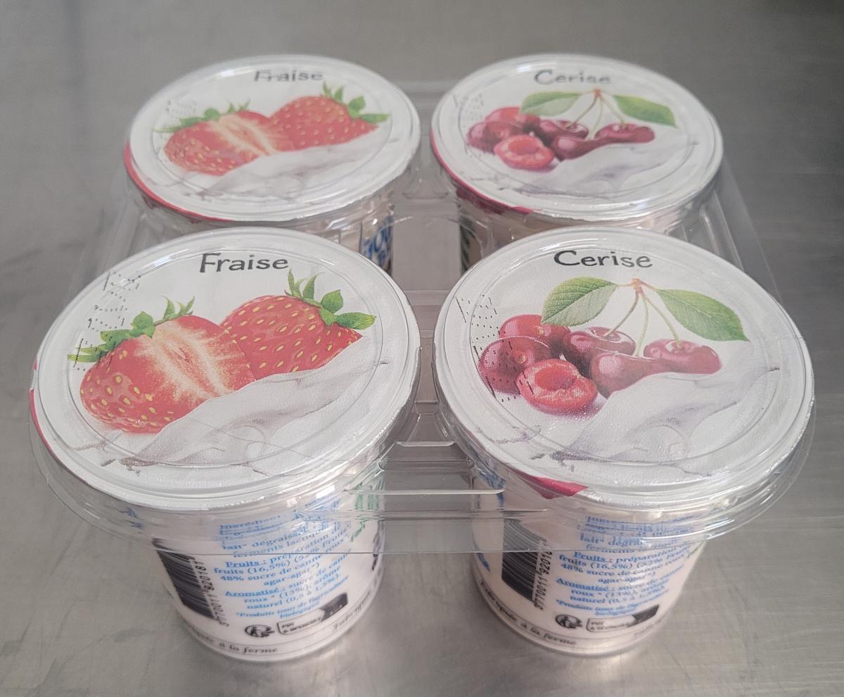Yaourts aux Fruits Rouges bio au lait partiellement écrémé pasteurisé et confitures (fraise, framboise, myrtilles, cerise, groseille ou fruits des bois).